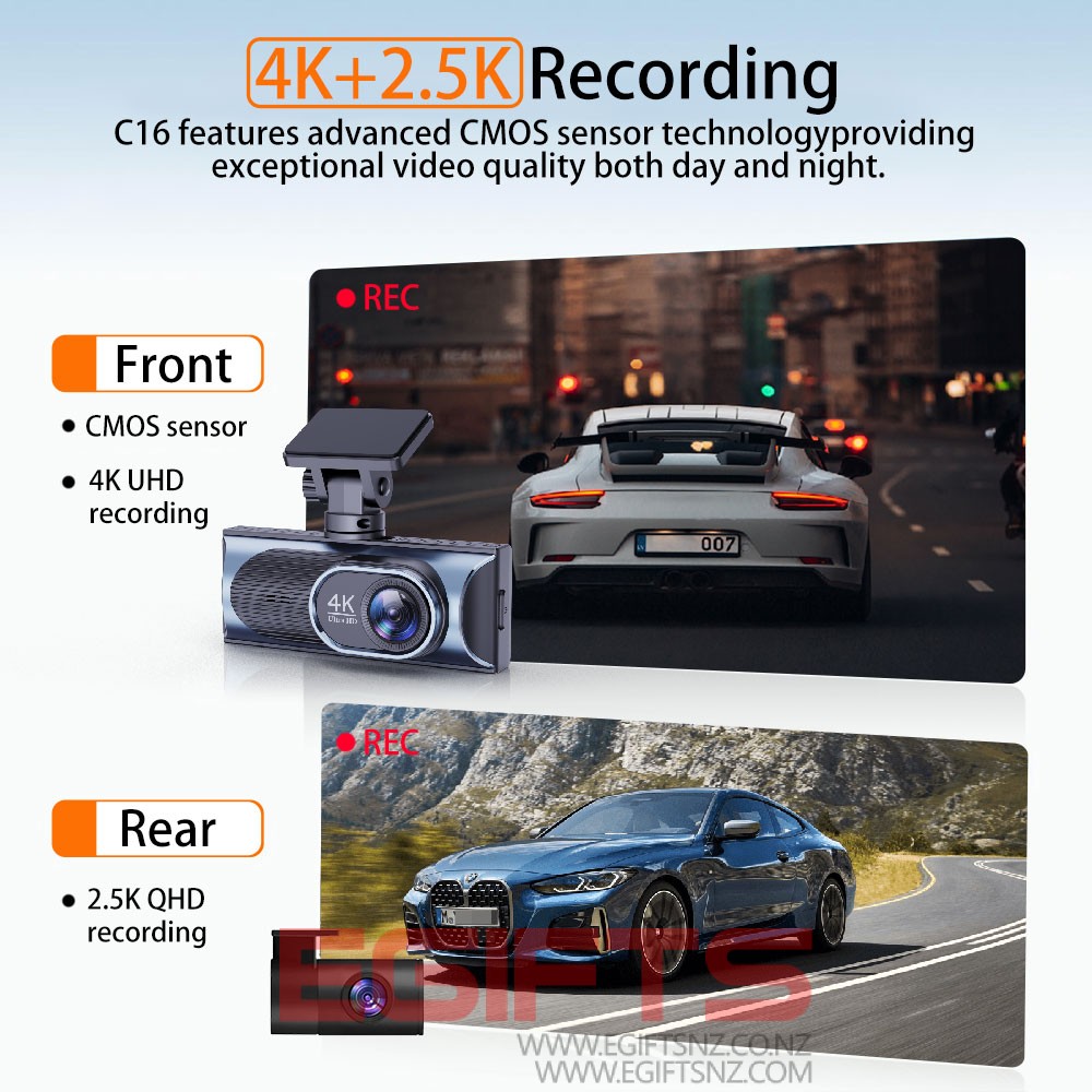 • [True 4K Quality with Sony Technology] Experience unmatched detail with true 4K resolution on the front camera and crisp 2K on the rear. Dash Cam Front Rear powered by the Sony IMX 415 sensor, captures stunning landscapes and enjoys superior clarity on dark roads.