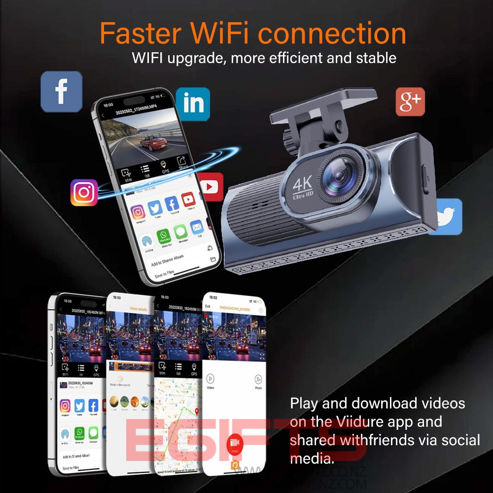 • [Expanded Vision & Effortless Setup] Secure expanded vision with up to 6 lanes coverage, utilizing 170° and 150° wide angles for the front and rear dash cameras, respectively. Easy installation process for both front and rear cameras, including a static sticker for a clean setup without residue.  dash camera also supports connecting to your APP via wifi.