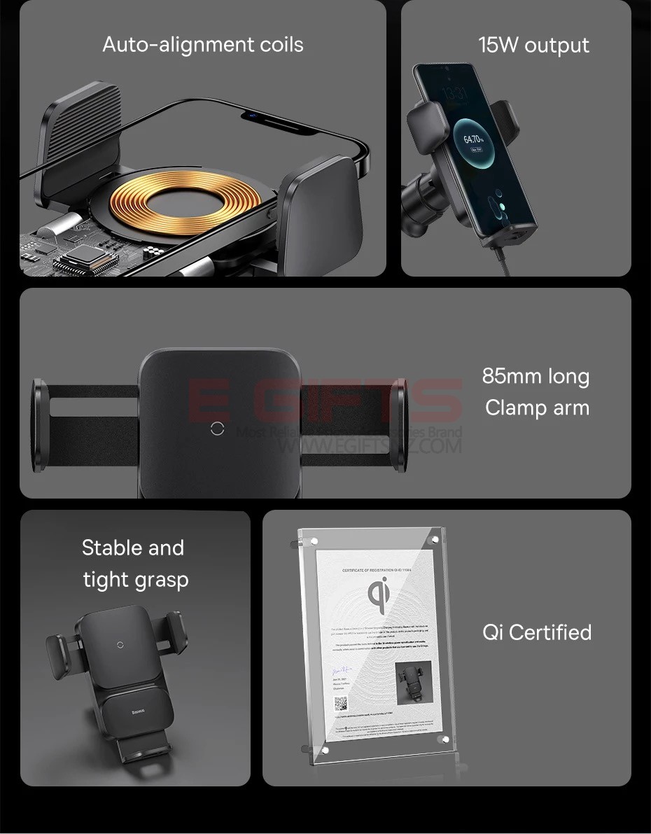 Baseus 15W Qi Automatic Alignment Wireless Car Charger Holder