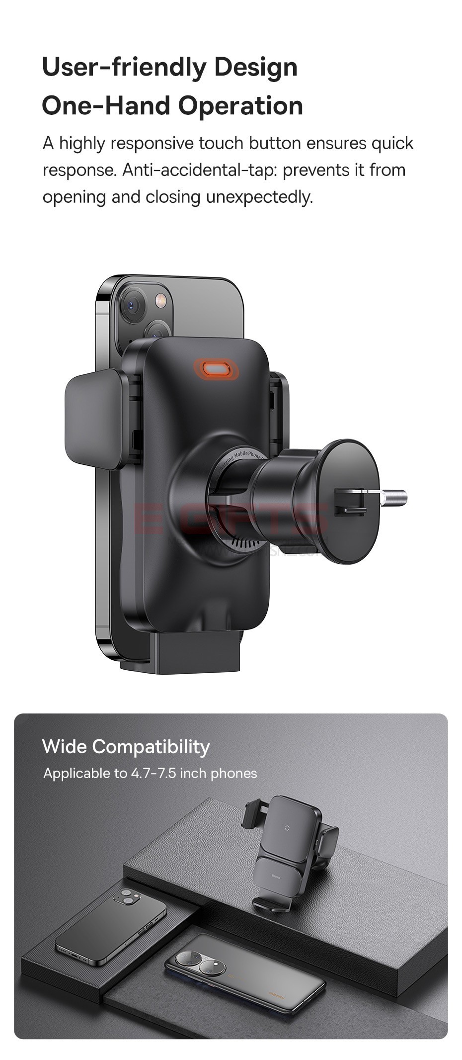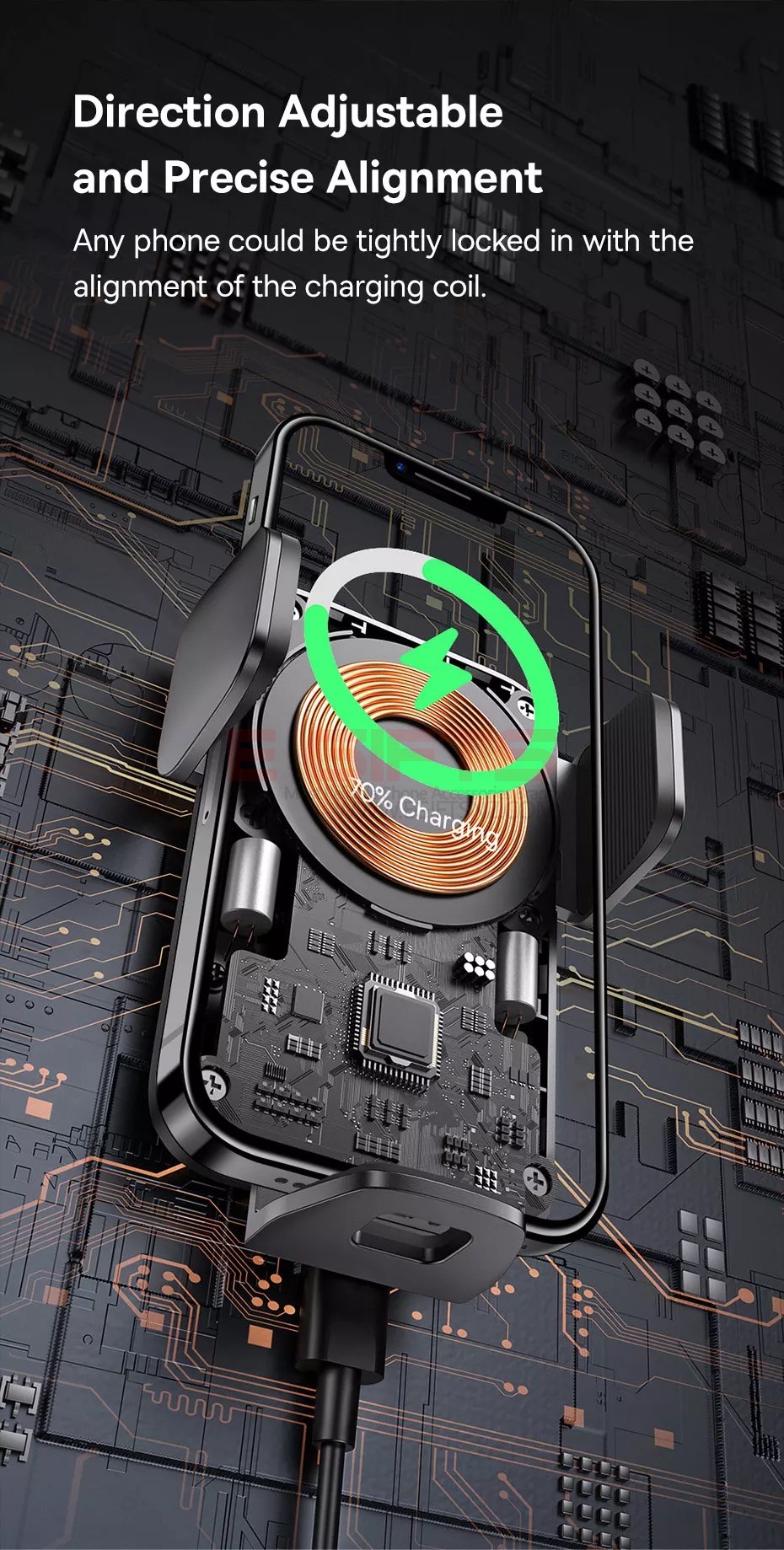 Any phone could be tightly locked in with the alignment of the charging coil. - Maximum 15W Power Output