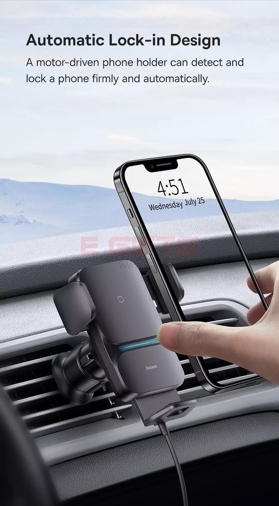 A motor-driven phone holder can detect and lock a phone firmly and automatically. - No More Squeaking