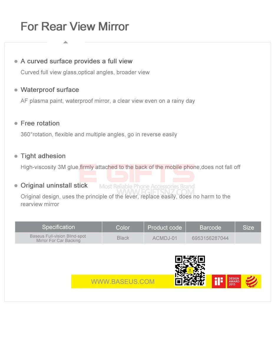 BASEUS Car Blind Spot Rear view Auxiliary Mirror