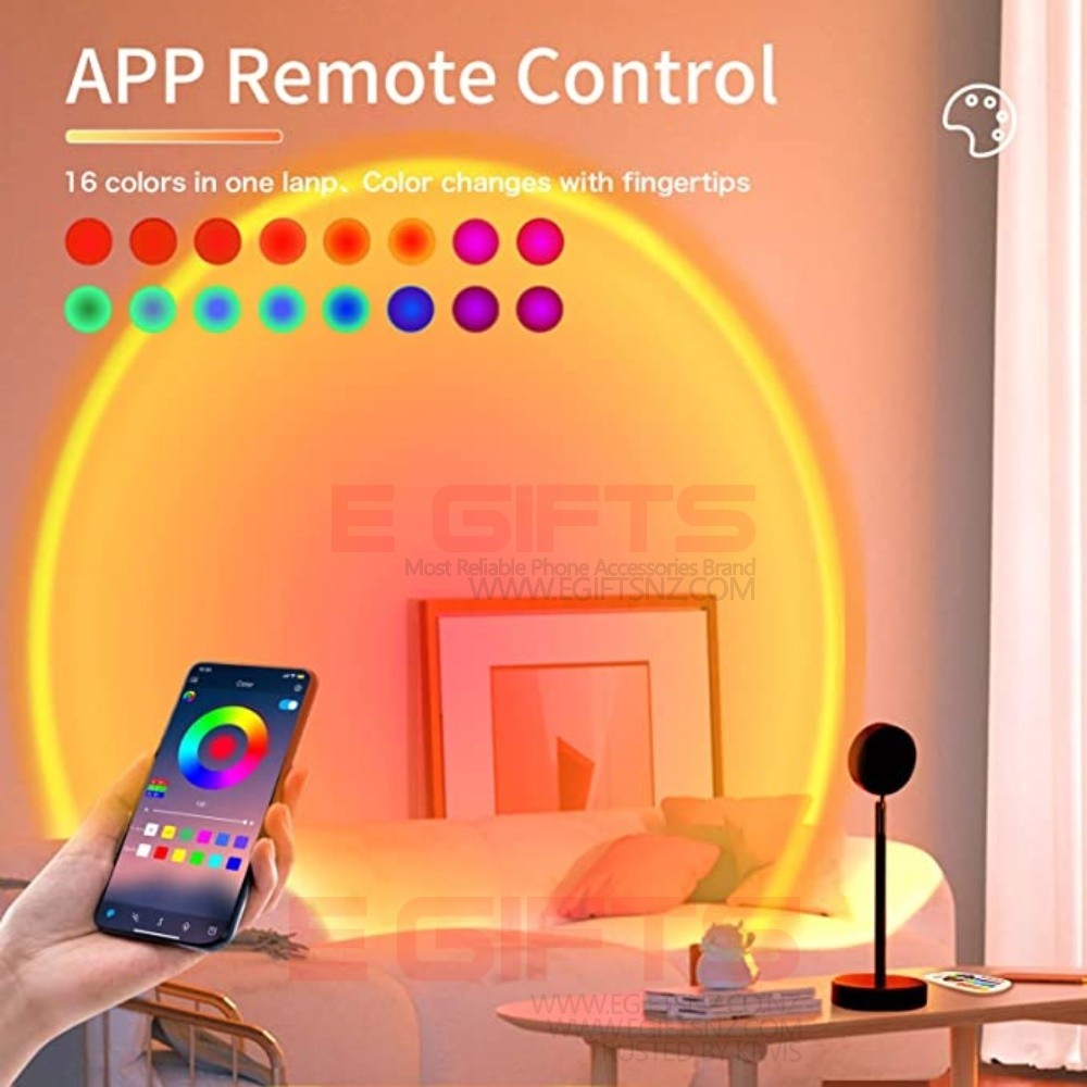 - 【16 Kinds of Static Colors + 4 Kinds of Dynamic Modes + 4 Kinds of Music Modes】- Sunset projection lamp has built-in RGB LED light source, the light effects can be used for hundreds of light combinations through Bluetooth APP. Sunlight lamp for Room Photo Background Romantic Gifts for Women