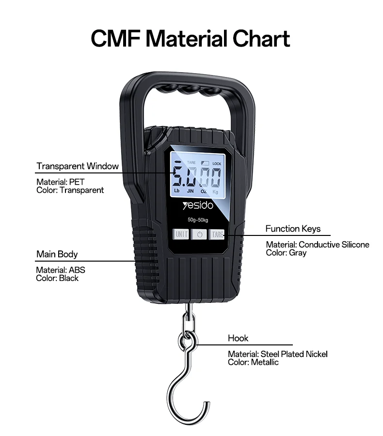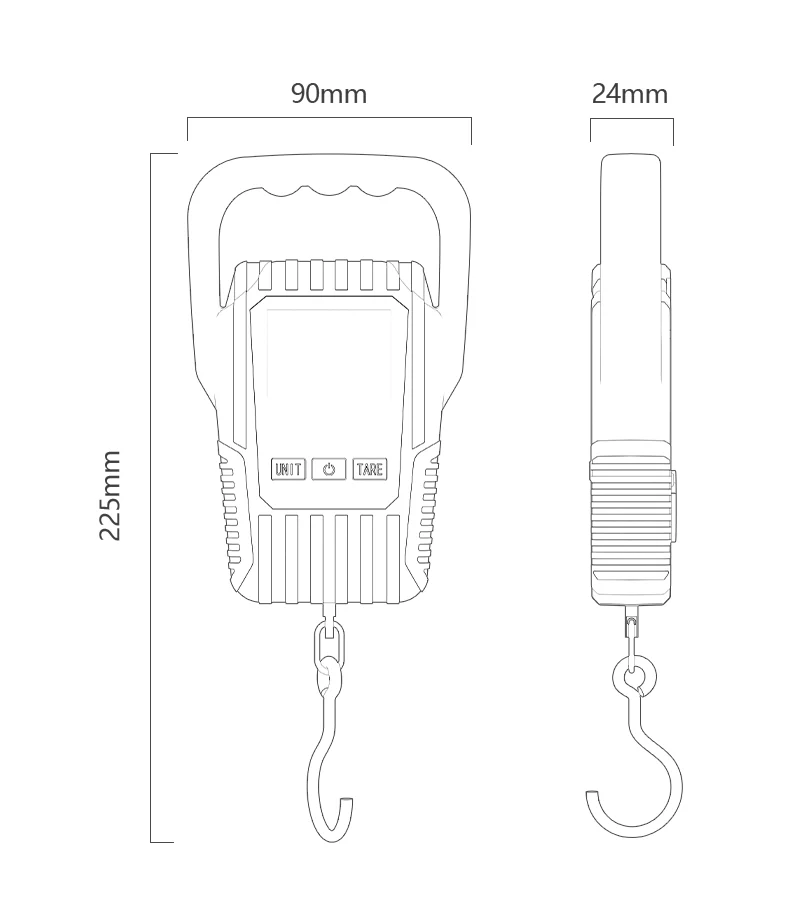 Easily toggle between Kg, Lb, JIN, and OZ for versatile use. - Durable Metal Hook