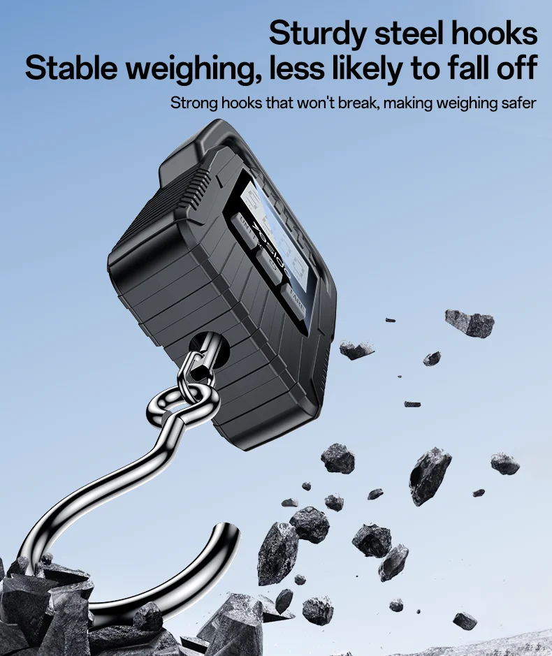 Strong steel-plated nickel hook offers secure and stable weighing without bending. - Portable & Lightweight Design