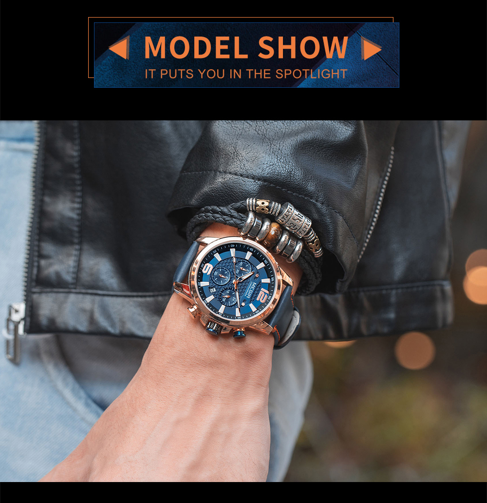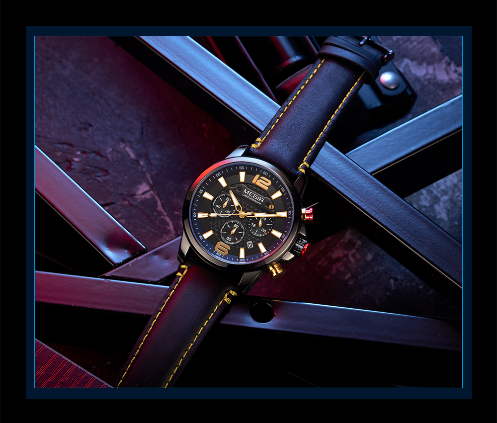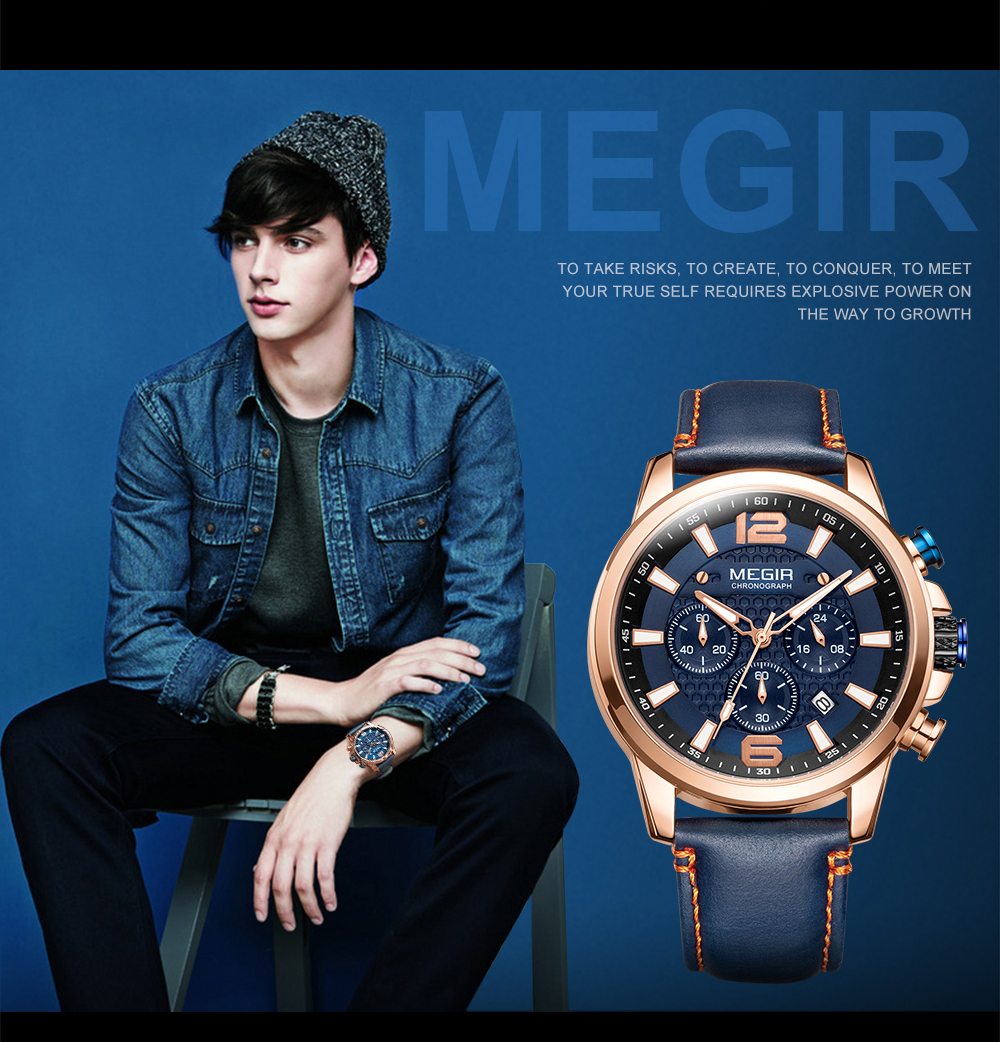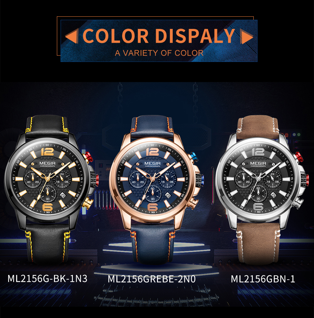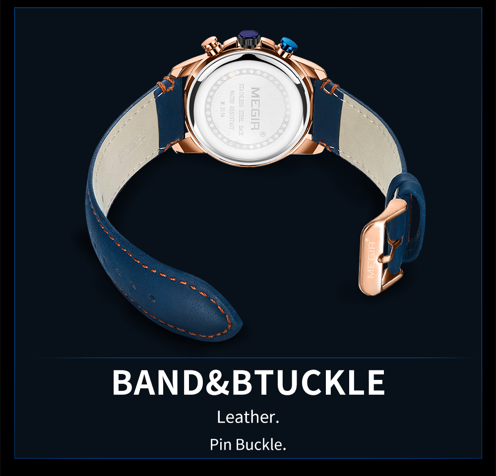 The MEGIR MS-2156G Multifunctional Men Watch has chronograph functions. This watch features stainless steel metallic straps that can be adjusted and a blue dial. This watch is water-resistant up to 30ATM and has an auto-date feature. The dial window is made of hardlex and the case material is made of alloy material.It can be a perfect gift for birthdays, gift for her, anniversary gift, secret Santa gift, and Christmas gift. This watch can be personalized or engraved with a name or a message. We provide a free complimentary card with every purchase and free engraving.