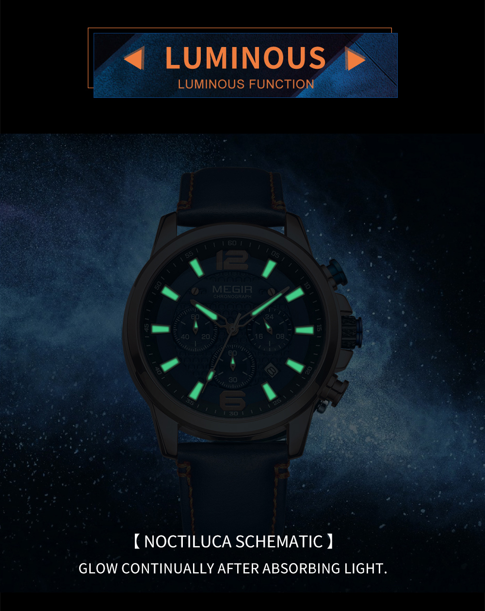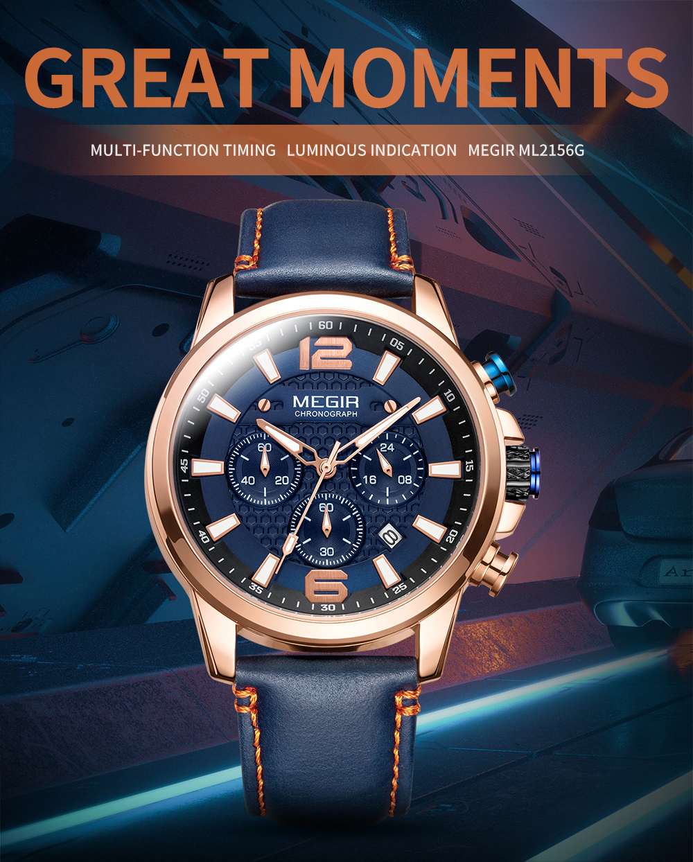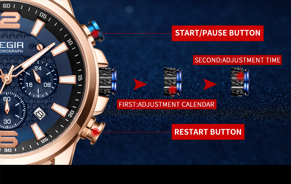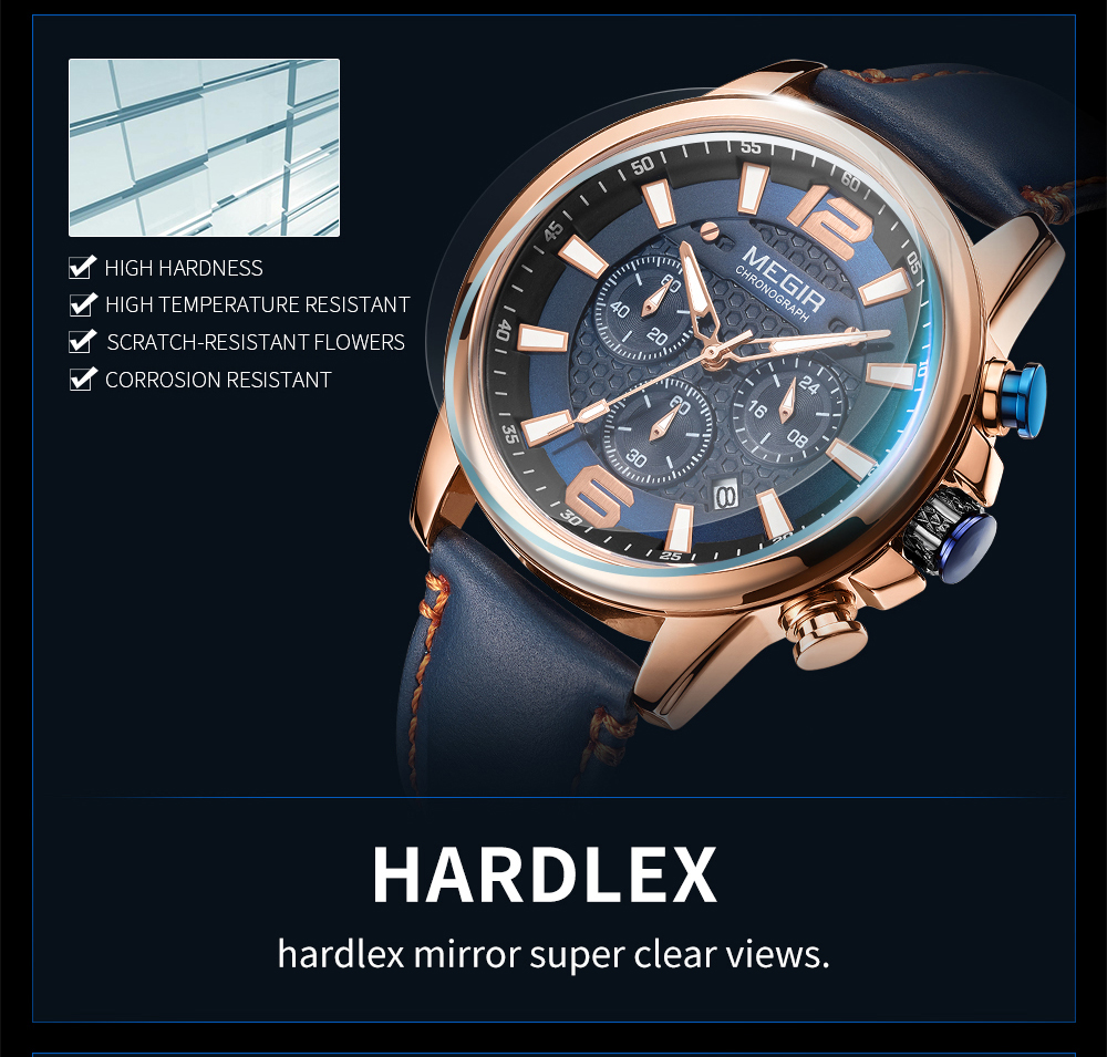 The MEGIR MS-2156G Multifunctional Men Watch has chronograph functions. This watch features stainless steel metallic straps that can be adjusted and a blue dial. This watch is water-resistant up to 30ATM and has an auto-date feature. The dial window is made of hardlex and the case material is made of alloy material.It can be a perfect gift for birthdays, gift for her, anniversary gift, secret Santa gift, and Christmas gift. This watch can be personalized or engraved with a name or a message. We provide a free complimentary card with every purchase and free engraving.