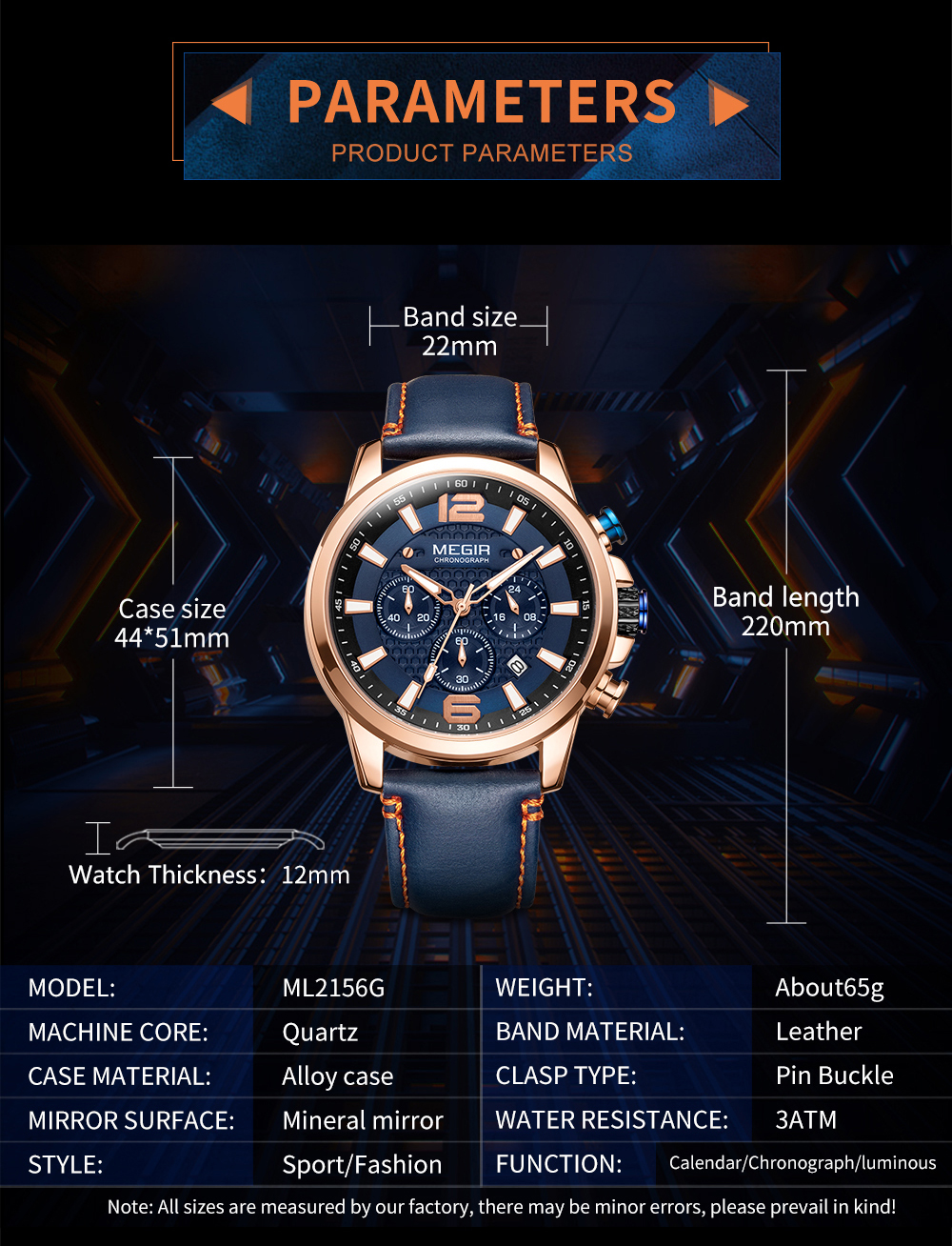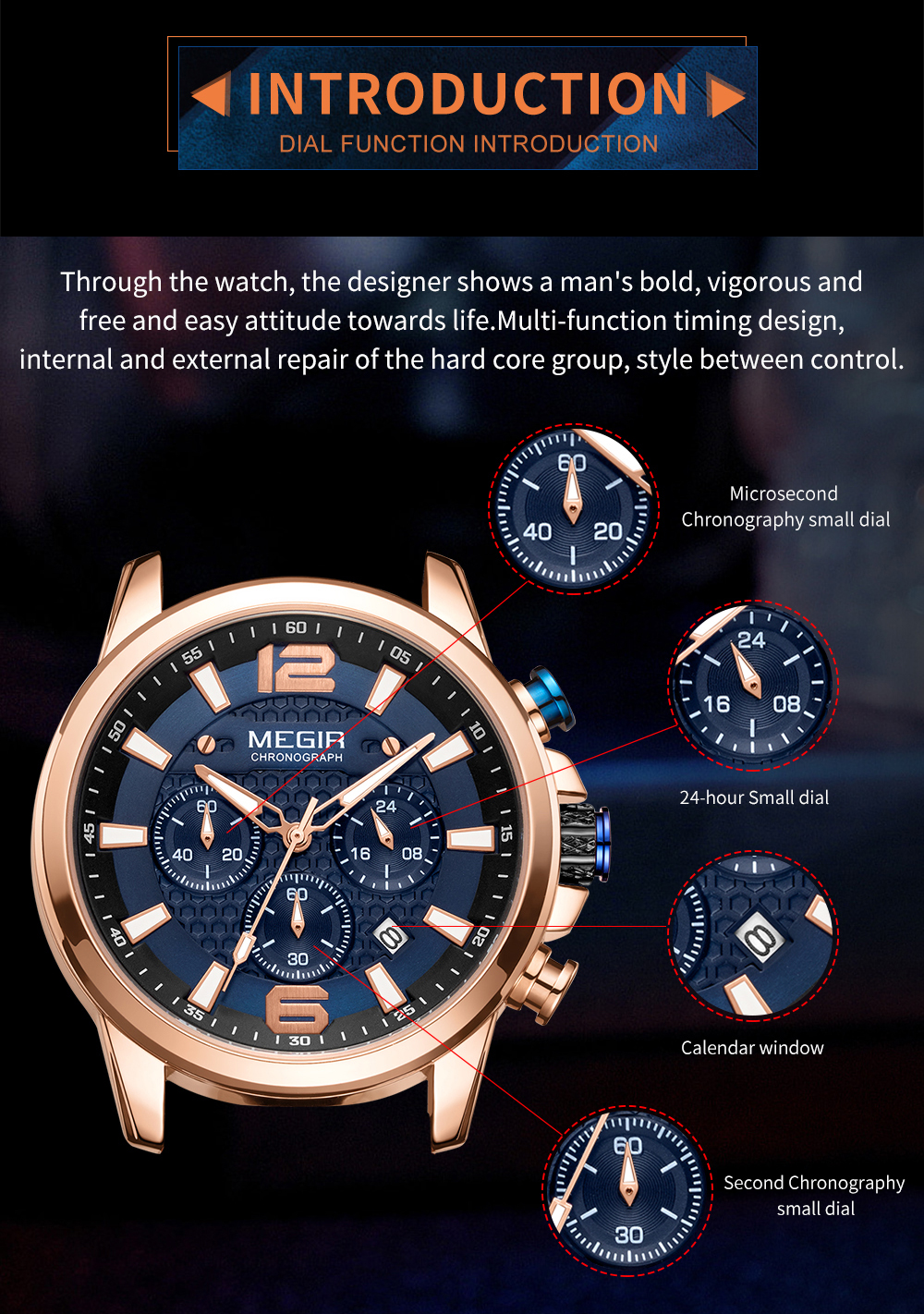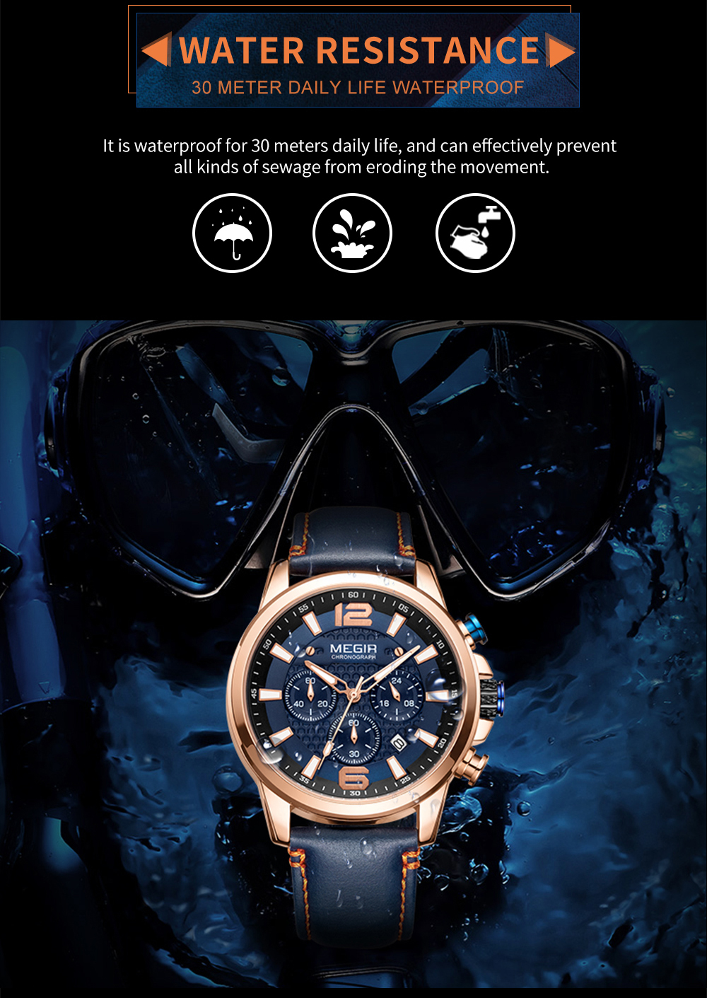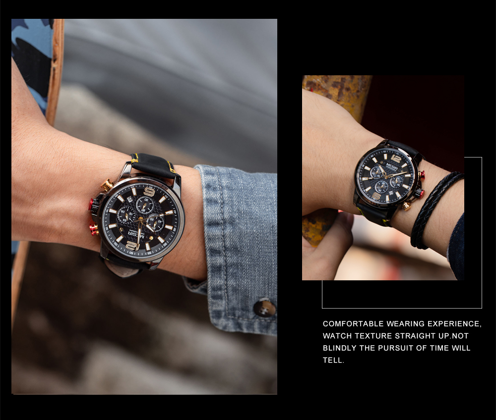 The MEGIR MS-2156G Multifunctional Men Watch has chronograph functions. This watch features stainless steel metallic straps that can be adjusted and a blue dial. This watch is water-resistant up to 30ATM and has an auto-date feature. The dial window is made of hardlex and the case material is made of alloy material.It can be a perfect gift for birthdays, gift for her, anniversary gift, secret Santa gift, and Christmas gift. This watch can be personalized or engraved with a name or a message. We provide a free complimentary card with every purchase and free engraving.