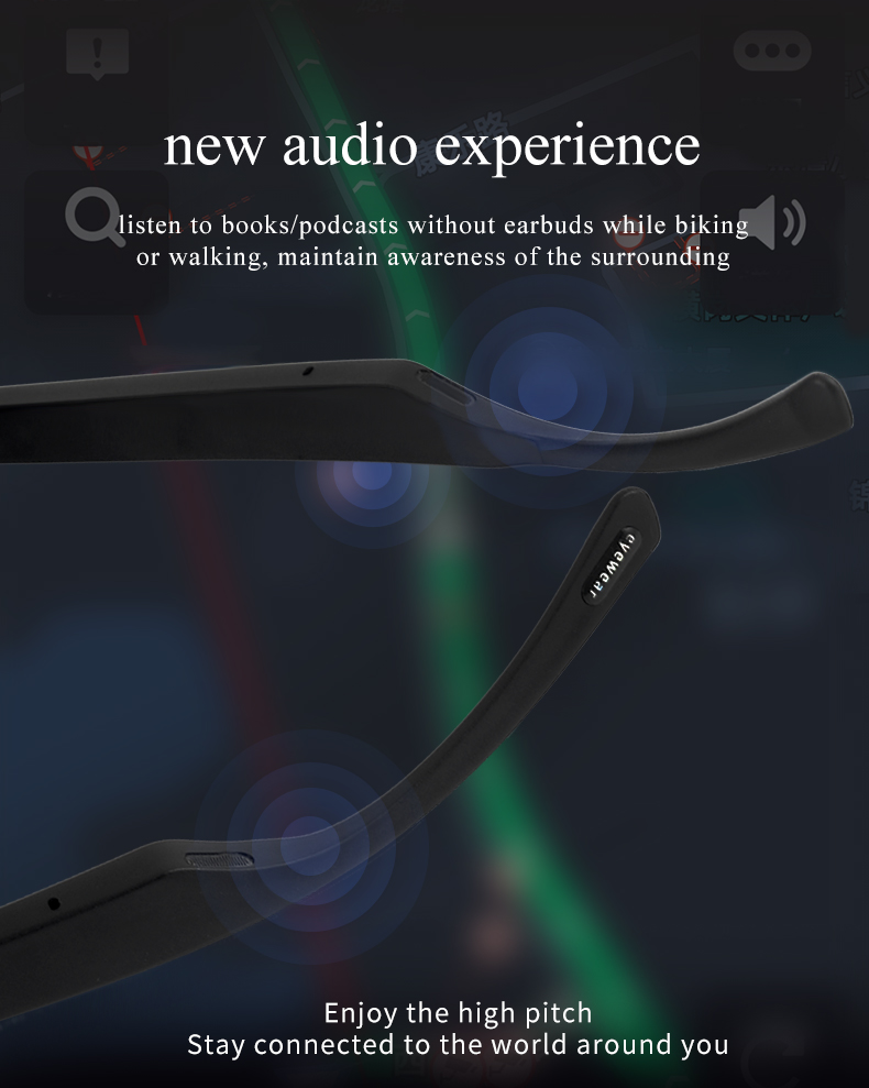 - ?Open-Ear Sound Experience – Our Smart Glasses are designed with an open-ear speaker, let you say goodbye to the discomfort of wearing headphones for a long time, immersive sound to the space around your ears. Sound quality loud enough, enjoy you favorite music. Bass frame won’t interfere with your open ears listening to everything around you.