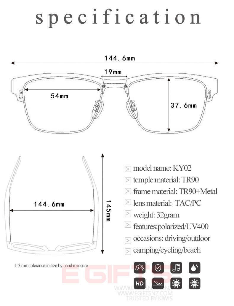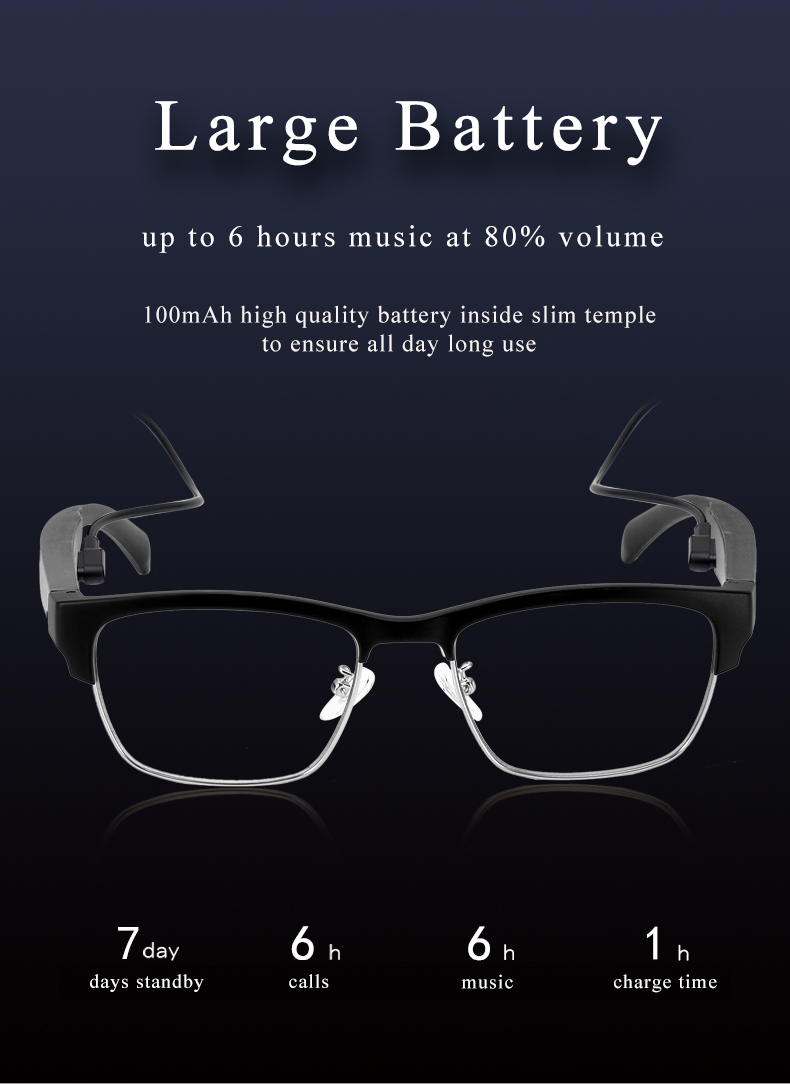 - ?Blue Light Filter/Polarized Lenses – Bluetooth-audio glasses are equipped with a polarized lens, can reduce glare, block 99% of ultraviolet rays which effectively protect your eyes from sun glare. Suitable for outdoor activities such as fishing, driving, walk the dog, etc. Blue light filter lenses can reduce 90% blue light relieve eye fatigue, dryness and vision loss. Suitable for outdoor activities such as watch TV&videos& phone&flat, play game, work in the office, etc.